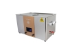 通過(guò)換能器,將功率超聲頻源的聲能轉(zhuǎn)換成機(jī)械振動(dòng),通過(guò)清洗槽壁將超聲波輻射到槽子中的清洗液。由于受到超聲波的輻射,槽內(nèi)液體中的微氣泡能夠在聲波的作用下快速變大破裂,破裂時(shí)產(chǎn)生的高強(qiáng)度剪切力作用于各類樣品上,從而達(dá)到清洗、提取、乳化、加速溶解、粉碎、分散等作用。